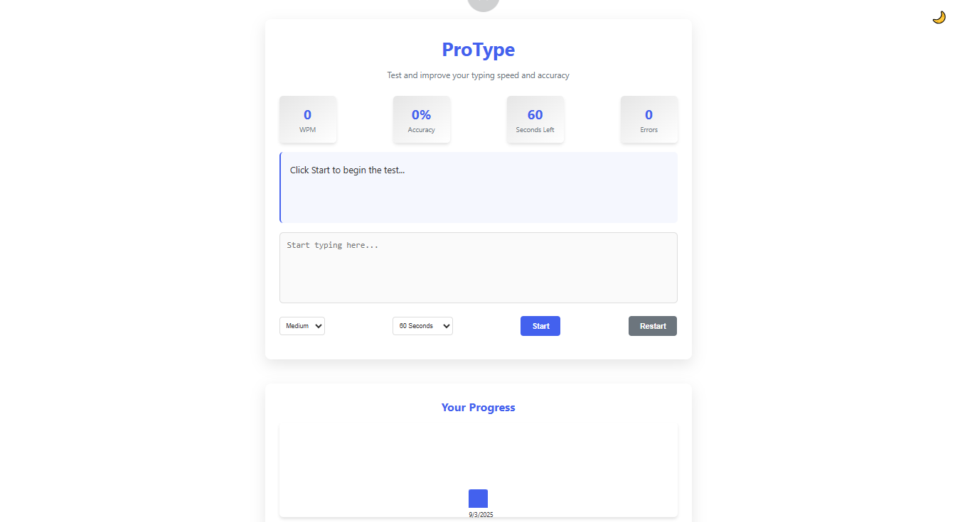 An interactive typing practice application that measures WPM, accuracy, and provides performance analytics.